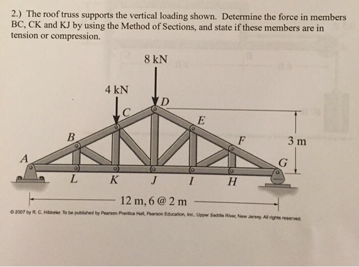 For the howe roof truss shown determine the forces in members bc ci and ij.