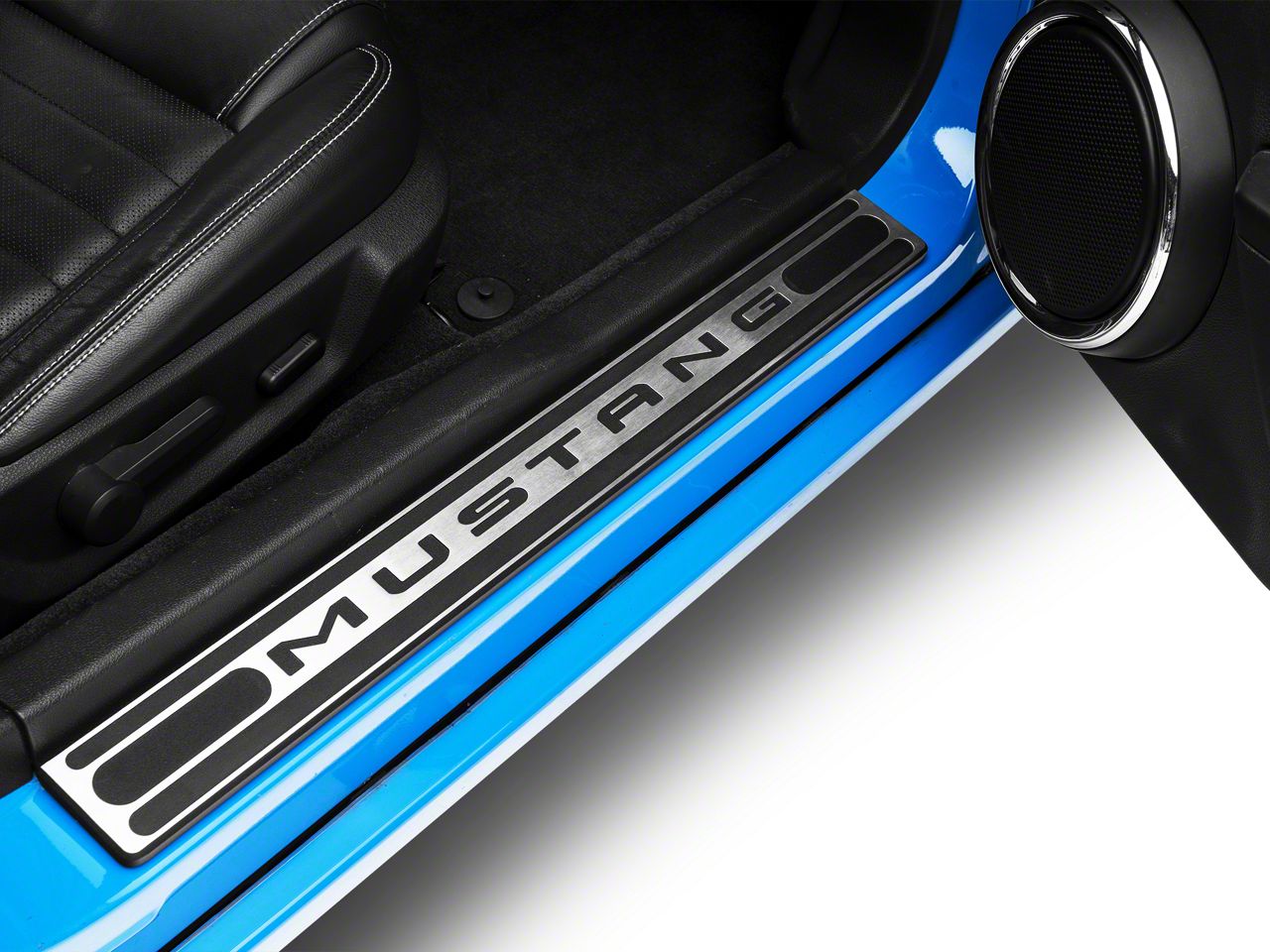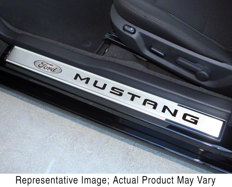 Available for all mustangs 1979 2010 2014 these mustang door sills will catch people s eyes at the track or at the show and look even better with some new mustang pedals and mustang floor mats.